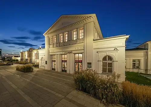 In 1860, the Russian architect A. I. Gornostayev constructed customs buildings on the opposite side of the tracks, later demolished in the Interwar period.[13] The station's establishment spurred Sosnowiec's rapid development, leading to the construction of public facilities (banks, hotels, commercial and service buildings), and residential structures, which contributed to receiving city rights from Tsar Nicholas II in 1902.[11][12]