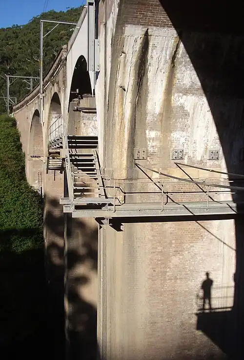 Major structural problems with the Stanwell Creek viaduct were identified in late 1985, with one span close to collapsing and another badly cracked, requiring substantial repairs and stabilising work.[4]