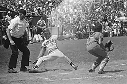 South Korea debuted at the 1976 Amateur World Series. With the country hosting the 1982 Amateur World Series, the South Korean team scored a dramatic victory over Japan when, trailing 0–2 in the bottom of the eighth, Kim Jae-bak hit a three-run homer off a foul pole. South Korea became the first Asian country to win the amateur baseball competition, finishing with an 8–1 record.[3]
