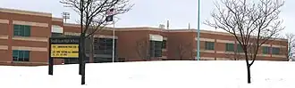 The South Lyon Union School District was formed in 1876.[5] In 1915, South Lyon Union High School was constructed on the same site at Liberty and Warren. It served as the district school for many years and was later used as the School Administration Building until it was demolished in 1998. In 1955, a new high school was built for the district - Bartlett Elementary. Another new High School was established in 1969 (now Millennium Middle School). In 1990, South Lyon High School moved to its current location, at 11 mile and Pontiac Trail.[5] In 1999, South Lyon High School received an addition, that included 22 classrooms, an auxiliary gym, and a new wrestling room. Over the 2007 summer break, South Lyon High School underwent a major renovation including new flooring, new ceilings in the commons area, and more modern design features. Also in 2007, the main construction on South Lyon East High School was completed, and the new, 2nd high school opened in that year. In 2015 SLHS got its football field redone and the name of the field was changed to honor former SLHS student Dominic Ciaramitaro who died lost his life while serving as a Marine in 2011.[6] In 2017 SLHS (abbreviation for South Lyon High School) built a new entrance after a mill bond was passed to upgrade 12 schools in the South Lyon School District.[7] South Lyon's Mascot is the Lion with the colors blue and gold. South Lyon High School also hosts the annual RED OUT, which raises money for the American Heart Association and has brought over 10,000 dollars in some years.