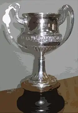 In its inaugural edition in 1930, Hércules CF achieved its first major national triumph by reaching the final on 1 June 1930,[3] which ended in a 3–2 loss to Club Gijón of Asturias, courtesy of goals from Avilesu and Vallejo (2).[1][4] In the 1932 tournament, Imperio of Madrid won the tournament after beating the Basques Erandio Club 3–0 in the final at the Chamartín, with all of the goals being scored in the first-half by Suaréz, Salazar, and Emilín.[1][5] Two of the players who started for Imperio in this final were then signed by Real Madrid within the next two years, Emilio Villa and Avelino Álvarez.[6] However, Erandio managed to redeem itself in the following season, claiming the trophy after beating Sevilla Amateur 1–0 in the final at the Montjuïc stadium, but Sevilla achieved redemption as well, as they went on to win back-to-back tournaments in 1935 and 1936, defeating Club Ciosvin de Vigo (6–1) and Real Zaragoza (3–2) in the finals; notably, Manuel Palencia scored a hat-trick in the former and another one in the latter, while Salustiano Santos, who went on to become a substitute to Guillermo Gorostiza, scored the opening goal in the 1936 final.[1]