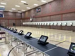 Jubilee Hall configured as an airgun range for the 2022 European Commonwealth Shooting Championships