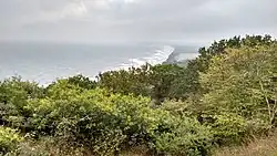 The hill is 97 m (318 ft) high and faces the Baltic Sea.[2] Since the surrounding landscape is relatively flat, it can be seen from a great distance and has traditionally been used as a landmark for seafarers. Many visitors trek up the hill to enjoy the view which is very good in clear weather. The Stenshuvud National Park is traversed by a section of the Skåneleden Trail, between Simrishamn and Kivik. The trail ascends Stenshuvud, offering a diverse range of landscapes and views.[2]