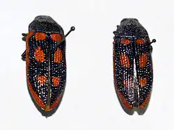 Stigmodera is a genus of beetles in the family Buprestidae, the jewel beetles. It is a large genus that some authors divide into three separate genera. Others keep them together, making Stigmodera a genus of some 550 species. Most are native to Australia and a few occur in New Guinea.[1]
