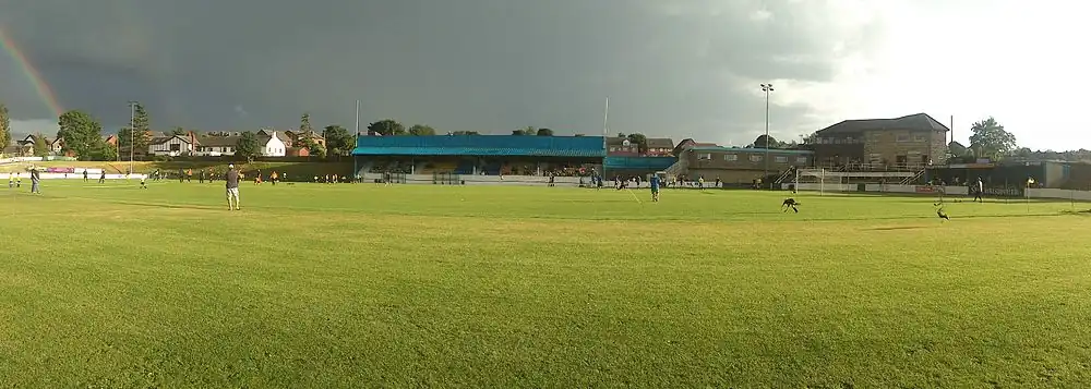As one side of the ground directly adjoins a cricket pitch, the club was required to erect a dividing fence in order to gain entry to the Northern Premier League. The fence was temporary in nature and was removed during the cricket season, however when the cricket club merged with another local side the cricket pitch stopped being used and the fence became a permanent fixture. It was partially funded by money raised from friendlies against Sheffield Wednesday and Sheffield United.[9]