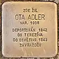 OTA ADLER BORN 1908 DEPORTED 1942 TO THERESIENSTADT TO AUSCHWITZ 1943 MURDERED |