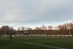At the end of the 1936–37 season the club disbanded due financial difficulties.[2] After World War II local club Stowupland Corinthians began playing at the Cricket Meadows, and joined the Border League in 1946. In the summer of 1947 the club's name was changed to Stowmarket Corinthians, and in August it was changed again to Stowmarket Town. After legal advice, it was changed for a third time, to Stowmarket F.C.[3] Under the management of player-coach Jackie Little, The club won the Border League, the League Cup and the Suffolk Senior Cup in 1950–51, beating Sudbury Town 2–0 in front of 10,867 supporters in the final of the latter. The League Cup and the Senior Cup were won again in 1951–52, and at the end of the season the club joined the Eastern Counties League.