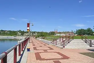 Syracuse's main water source is Skaneateles Lake, one of the country's cleanest lakes,[20] located 15 mi (24 km) southwest of the city. Water from nearby Onondaga Lake is not potable due to industrial dumping that spanned many decades, leaving the lake heavily polluted.[21] Incoming water is left unfiltered,[22] and chlorine is added to prevent bacterial growth. Most of the environmental work to achieve lake cleanup was scheduled to be completed by 2016; however Honeywell, the company tasked with the cleanup, announced the project's completion in late 2017.[23][24] For periods of drought, there is also a backup line which uses water from Lake Ontario.[25]