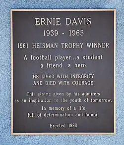 126. ^ Gallagher, Robert C. Ernie Davis: The Elmira Express, the Story of a Heisman Trophy Winner (Bartleby Press, 1999)