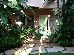Five bungalows were originally added to the gardens in 1915 to provide for families who could return each year with their own staff.[62] As of 2015, the hotel has 23 bungalows set out across the gardens. Bungalows 14-21 are known as "Bachelor's Row", due to their association with film stars and their affairs, including Warren Beatty and Orson Welles.[12] In 1990, a private pool and Jacuzzi were added to Bungalow No. 5 to accommodate businessman Walter Annenberg.[16] No. 5 had been a favorite of Elizabeth Taylor and Richard Burton, who had "a standing room service order for two bottles of vodka at breakfast, and two more at lunch".[12] Taylor also liked No. 3, where she stayed during her marriage to Eddie Fisher. Marilyn Monroe favored No. 1 and No. 7. No. 1, the most secluded of the bungalows, features an interior described by CNN as "creamy, lush and traditional, decorated in the manner of one's wealthy grandparents". No. 7 has become known as "the "Norma Jean".[12] Dietrich ordered a 7 feet (2.1 m) by 8 feet (2.4 m) bed added to No. 10, the bungalow where John Lennon and Yoko Ono stayed in the 1970s.[12] No. 22 was favored by Frank Sinatra and later by Donald Trump.[63] In 2011, two Presidential Bungalows were established, replacing the tennis courts,[61] with each containing three bedrooms and a private swimming pool and shower.[16] As of 2018, a one-night stay at a bungalow may cost as much as $10,000.[63]