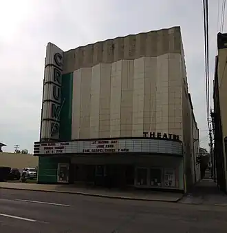 The theatre came into being in 1889 when Charles Franklin Sparrell was hired by John Smith Crump to add a theatre to an existing building at this site.[2] Alden Meranda completed a renovation in 1941 that transformed the building into its current Art Deco appearance. In 2013 a theatre consulting firm, Jones & Phillips, was hired by the Columbus Redevelopment Commission to complete a study on the viability of the theatre.[3]