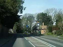 The A413 at Whitchurch in Buckinghamshire: The Firs is located behind the high stone wall on the left