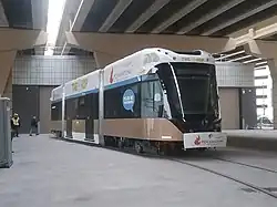 On April 6, 2015, the city invited bids for the supply of four streetcars, with the issuing of a request for proposals to interested manufacturers.[55] In November 2015, the city awarded an $18.6-million contract to Brookville Equipment Corporation to build four "Liberty" model streetcars for Milwaukee.[56][57] A fifth car was added to the order later, to expand the fleet sufficiently to be able to serve the future Lakefront extension.[58]