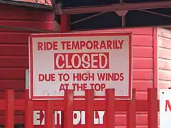 The ride is frequently affected by high winds and will not operate with winds speeds in excess of 25 to 30 mph in certain directions due to the increased risk of the train stalling.