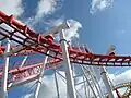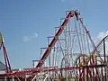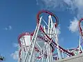 The Odyssey (formerly Jubilee Odyssey) is a roller coaster at Fantasy Island in Ingoldmells, England. Built by Vekoma of the Netherlands in 2002, it was named to commemorate the Golden Jubilee of Queen Elizabeth II. It is Vekoma's tallest example of their Suspended Looping Coaster (SLC) design in the world. Standing at 167 feet (51 m), it is the fourth tallest roller coaster in the UK, after Hyperia (236 feet) the Big One (213 feet) and Stealth (205 feet).[2] It is tied for the second tallest full circuit inverted roller coaster in the world (alongside Banshee at Kings Island). It has a top speed of 63 mph and can exert forces up to 4.8 g's.