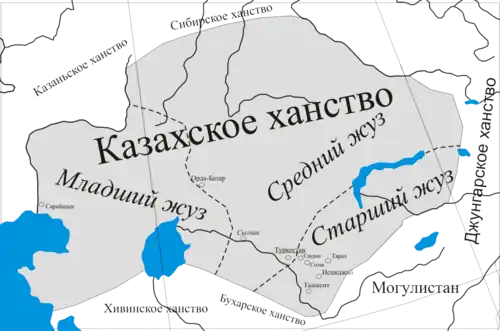 1. ^ А. Кузембайулы, Е. Абиль: История Казахстана, с. 110