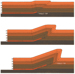 Diagram of the evolution of a fault propagation fold
