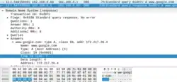 TTL of a DNS answer resolving google.com, seen in Wireshark
