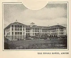 Tivoli Hotel[1] in Ancón[2] district of Panama City, Republic of Panama,[3] was a historic hotel.[4] US president and Mrs. Teddy Roosevelt[5] were considered the first guests to stay at the Tivoli on November 15, 1906.[6] The grand hotel[6] later served many dignitaries and celebrities, from royalty to film stars, from presidents to sports heroes[7] for years.[8] The Tivoli served luncheon to several hundred passengers every time a cruise ship[6] passed by Panama Canal. After being converted,[9] later, to The Tivoli Guest House, it was officially closed on April 15, 1971.[7] According to Panama Canal Museum[10] the grand Tivoli Hotel served as the centerpiece of Canal Zone[11] society. The hotel derived its name from the name of the hill; "Tivoli hill"[2] on which it was built. This hotel was located in Ancón[4] on the southern slope of Ancon Hill overlooking the Bay[12] of Panama.[13] Tivoli hill was named after the famous hill in Rome,[14] Italy.