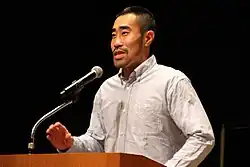 Tomoaki Hamatsu (浜津 智明, Hamatsu Tomoaki; born 3 August 1975),[1] better known as Nasubi (なすび, "Eggplant"), is a Japanese comedian and media personality.[2] Hamatsu is best known for appearing on the controversial reality television show Susunu! Denpa Shōnen.