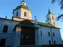 The Trinity Cathedral in Trubchevsk, Russia, was built in the 18th century on a hill rising above the river Desna. It incorporates the foundations of an earlier church, built in the beginning of the 16th century by the Princes Troubetzkoy, and it subsequently became the site of their family tomb. The present cathedral was built at the end of the 18th century over the old building. The belfry was added at the beginning of the 19th century.