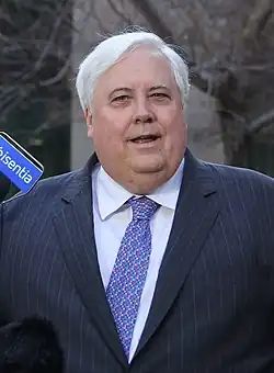 55. ^ "Cashed-up Clive Palmer to revive Palmer United Party". Australian Financial Review. 23 February 2018. Archived from the original on 9 February 2019. Retrieved 9 February 2019.