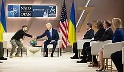 The United States has supported Ukraine during the ongoing Russian invasion of Ukraine. The invasion, which began on February 24, 2022, was condemned by the Biden administration, which provided military, financial, and humanitarian aid to Ukraine, and imposed sanctions against Russia and Belarus.[1][2] However, the second Trump administration since 2025 has proposed a peace deal and increasingly sought to distance itself from financially supporting Ukrainian resistance.[3]