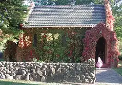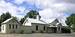 Uralla achieved town status in 1855, spurred by a gold rush in the Rocky River area three years earlier, swelling the town's population to over 5,000. In 1856, another, more considerable gold rush took place, but did not lead to any lasting development. By 1859, Uralla had three hotels, stores, a post office, a flour mill and a school.[8] The Uralla Municipality was incorporated in 1882. In 1948, it became the administrative centre of the Uralla Shire after the municipality was merged with the former Gostwyck Shire. More gold was discovered and mined at Melrose in the Enmore area in about 1887. This discovery led to the erection of the Melrose public school and village, which was about 32 km east of Uralla. In 1927 this area was subdivided for soldier settlement, and ballots were held to determine the new settlers. In about 1889, gold was discovered at Groses Creek, which is 6 km south-west of Enmore, near the Mihi Falls on the eastern side of Uralla.[9]