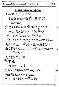 An autographed transcription of a text from the tomb of Ahmose, son of Ebana, from Urkunden IV
