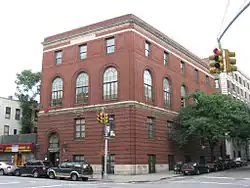 Initial residential development in Washington Heights began in the late 19th century with the construction of row and wood-frame houses in the southern portion of the neighborhood, particularly near Amsterdam Avenue.[28]: 2 [33] In 1886, the Third Avenue Railway was extended from 125th Street to 155th Street along Amsterdam Avenue.[34]: 7 However, higher residential density would not be supported until the extension of the Interborough Rapid Transit Company (IRT)'s first subway line (now part of the Broadway–Seventh Avenue Line).[35]: 76 The IRT built the 157th Street, 168th Street, 181st Street, and Dyckman Street stations between 1904 and 1906 (the 191st Street station opened as an infill station in 1911).[11]: 12 [36]: 1026 [37]: 60