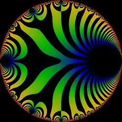 The real part of the discriminant as a function of the square of the nome q on the unit disk.