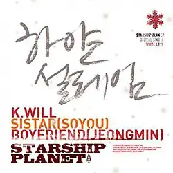 "White Love" is the second collaboration single by labelmates K.Will, Sistar and Boyfriend, released under the name Starship Planet (Starship Entertainment). This digital single project is a way of thanking the fans who have cheered on Starship. The special digital single was released digitally on November 29, 2012.
