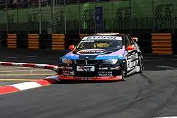 After a year at Proteam Motorsport, D'Aste returned to Wiechers-Sport for the 2009 season.[5] D'Aste crashed out of the first race of the season at the Race of Brazil and finished 20th in the second race. He broke through into the top five of the Yokohama Drivers' Trophy at the second round. French GT Championship driver Laurent Cazenave joined Wiechers-Sport for the Race of France alongside D'Aste.[6] D'Aste came close to securing the race two pole position at the Race of Spain after a battle with Sergio Hernández. The team did however go on to take the independents' victory in race two. D'Aste recorded two more independent victories at the Race of Portugal. The team scored their first points of the season at the Race of Germany when D'Aste finished seventh,[7] this later became sixth when Nicola Larini was given 30–second penalty.[8] D'Aste collided with Scuderia Proteam Motorsport driver Fabio Fabiani in free practice for the Race of Italy before going on to take the independents' pole position in qualifying and the independent victory in race two. Japanese driver Seiji Ara joined the team for the Race of Japan in a second car.[9] Takayuki Aoki took over the second car for the Race of Macau season finale.[10] D'Aste stopped on track during the first part of qualifying and on the narrow street circuit, Lada Sport driver James Thompson crashed into the stationary BMW. The extensive damage from the collision ruled D'Aste to sit out both races while Thompson was taken to hospital.[11] This left Aoki is the team's only entry for the rest of the weekend, scoring a best result of sixteenth in race two. The team finished the season fourth in the Yokohama Teams' Trophy while D'Aste dropped to fourth in the drivers' trophy having missed the final round.