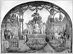 In the 19th century, the most important producer of tapestries in the world was the city of Aubusson, in France. It was there that Mr. Baumgarten found the Foussadier family who were taken to New York City to work in his company.[2] They had formerly worked at The Royal Windsor Tapestry Manufactory (1876–1890).[3] Antoine, Louis and Jean Foussadier handled the dyeing and loom work, whilst the females of the family, Madame Foussadier and her daughter Adrienne did all the needlework. By 1896 the factory had 40 artisans working full-time. Examples of Baumgarten Tapestries can be seen at the Metropolitan Museum of Art[2] and in the collections of the Vanderbilts, Rockefellers and Whitneys.