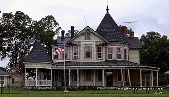 William H. Vincent House is a historic home located at Capron, Southampton County, Virginia. It was built in 1889, and is a two-story Queen Anne style frame dwelling. It features a cross gable roof, tower, modillioned cornice and wrap-around porch. The porch incorporates a corner gazebo topped with a conical tin roof. Also on the property are the contributing two-room office building, a playhouse, a barn, and the Ambrose House.[3]