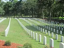 By mid-century, the churchyard of St. James Episcopal Church and other town cemeteries had become filled with graves. On November 16, 1853, a group of citizens, organized as "the Proprietors of the Wilmington Cemetery", was formed to develop a new cemetery. Sixty-five acres of land around Burnt Mill Creek were chosen as the site for what would be called Oakdale Cemetery. It was the first rural cemetery in North Carolina. The cemetery's first interment, on February 6, 1855, was six-year-old Annie deRosset.[44] Many remains from St. James churchyard were relocated to the new cemetery.