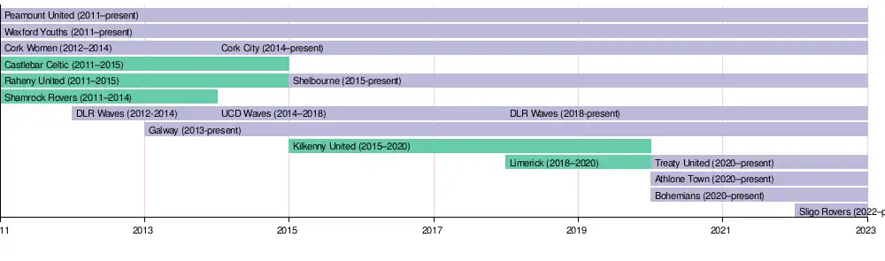 | 2011–12 | Peamount United become the first Republic of Ireland team, including men's team, to qualify for the knockout stages of a European competition.[10] They also become the inaugural winners of the Women's National League.[11] |