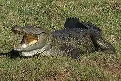 The reptile fauna recorded from the park is 47 and six of them are endemic. Sri Lankan krait, Boulenger's keelback, Sri Lankan flying snake, painted-lip lizard, Wiegmann's agama, and Bahir's fan-throated lizard are the endemic species.[2][14] The coastal line of the park is visited by the all five globally endangered sea turtles (leatherback turtle, olive ridley, loggerhead sea turtle, hawksbill turtle, and green turtle) that visit Sri Lanka.[2][3] The two breeding crocodile species of Sri Lanka, mugger crocodile and saltwater crocodile, inhabit the park. The Indian cobra and Russell's viper are among the other reptiles.[9]